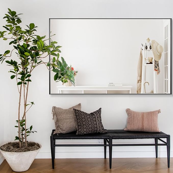 27x40 Inch Black Bathroom Mirror for Wall, Aluminum Frame Rectangle Rectangular Vanity Mirror, Modern Large for Bedroom, Living Room, Horizontal or Vertical