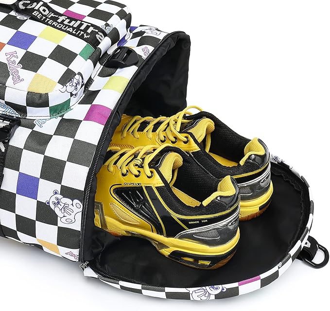 Kalesi Gym Duffle Bag Backpack 4-Way Waterproof with Shoes Compartment for travel Sport Hiking laptop (Checkerboard)
