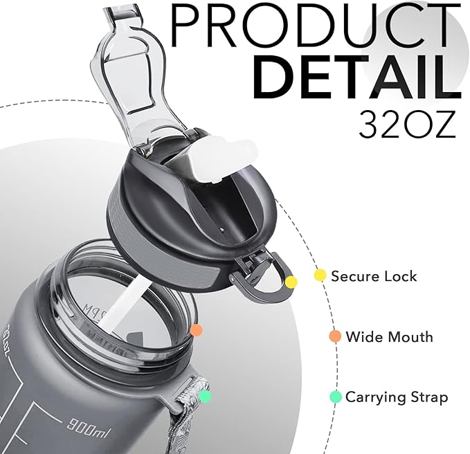 - Motivational Quote and Time Marker: 32 oz water bottle with time markers and inspiring quotes, great for tracking daily water intake and staying hydrated.
