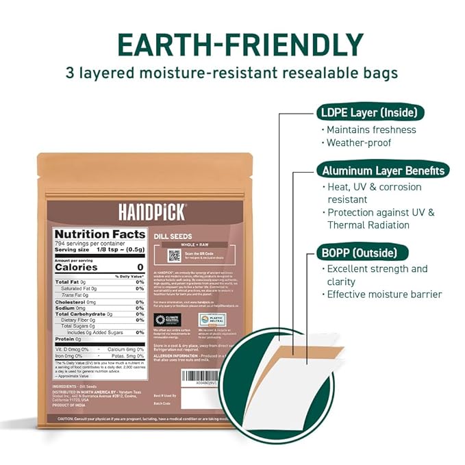 HANDPICK Dill Seeds (397g/14oz) Non GMO, Gluten Free, 100% Raw, Sourced from India, For Cooking, Drinks, Packed in Resealable Ziplock Pouch | For Pickling