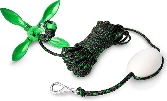 - MARINE GRADE: The anchor is with 50 feet marine grade rope. It also includes a flotation buoy and stainless steel snap hook for quick and easy connections.