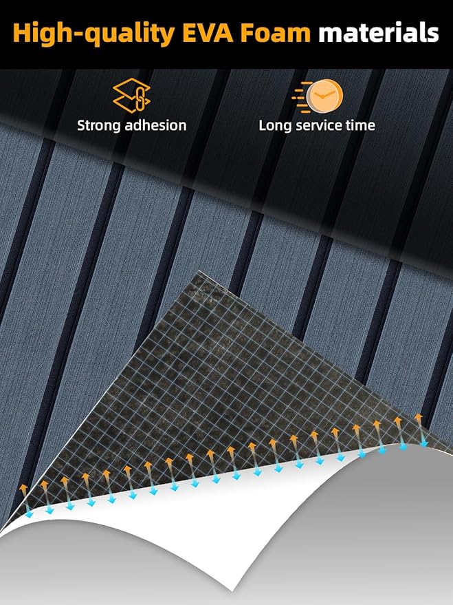 • High Quality EVA Foam - FOCEAN Boat flooring uses high-quality EVA(Ethylene-vinyl Acetate) material. High durable eva foam boat decking; Not easy deformation; Not easy to tear or damage; Not easy to fade; High density. Maintain a constant temperature, not easy to absorb heat; Odorless, non-toxic, Non-Slip marine mat; Self-Adhesive boat carpet. Hardness: 55 (±1P)
