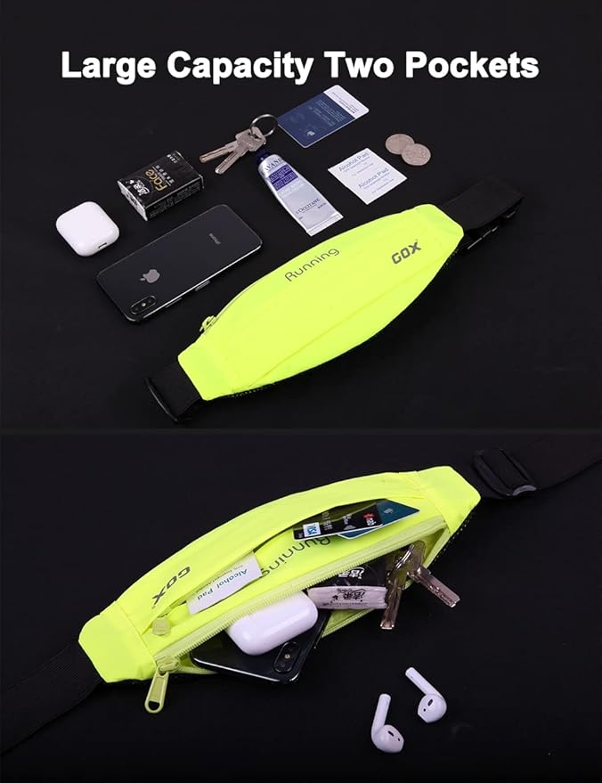 - SAVE YOUR PHONE FROM SCRATCHES: with 2 expandable pockets, one large, one small. Now you can handle the phone without other stuff accidentally falling out. Amazingly COMFORTABLE runners belt. IT DOESN’T BOUNCE. No rubbing.