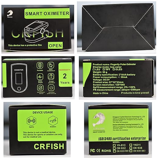 - Accessories include oximeter, color box, portable lanyard, product manual, certificate of conformity