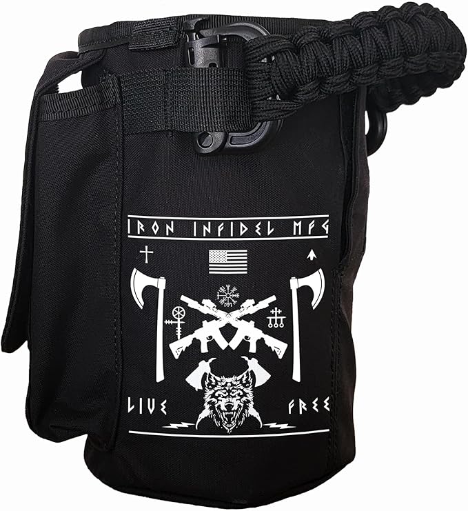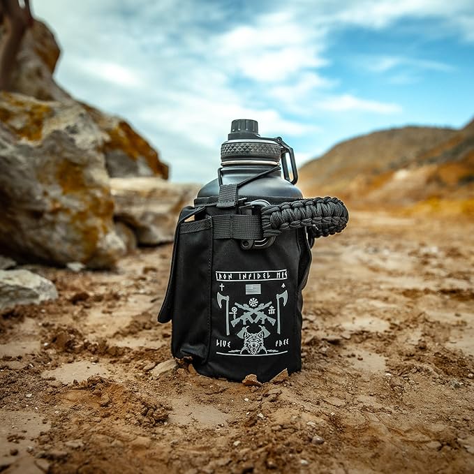 - REMOVABLE COVER - Made from military grade rip and tear resistant fabrics. The nylon cover is removable, washable, and has two utility pouches for your cellphone, wallet, keys, and other belongings, and a removable paracord carry handle. Covers can be interchanged between all Iron Infidel 2 liter bottles.