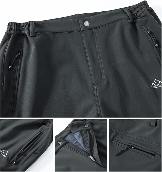 Gopune Men's Snow Ski Waterproof Softshell Pants Outdoor Windproof Warm Hiking Insulated Pants