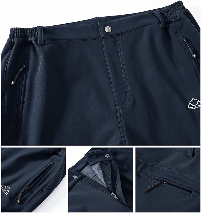 Gopune Men's Snow Ski Waterproof Softshell Pants Outdoor Windproof Warm Hiking Insulated Pants