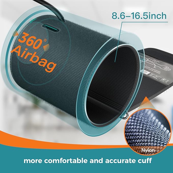 - 【Clinical Accuracy】Accuracy is everything when it comes to checking your blood pressure. Powerful SOC chip and upgraded DFFA double filtering algorithm, cuff detection, and movement notice, even with the 360° around the entire circumference of your arm and 400mmHg maximum inflation pressure cuff, they all ensure higher accuracy and help reduce measurement errors.