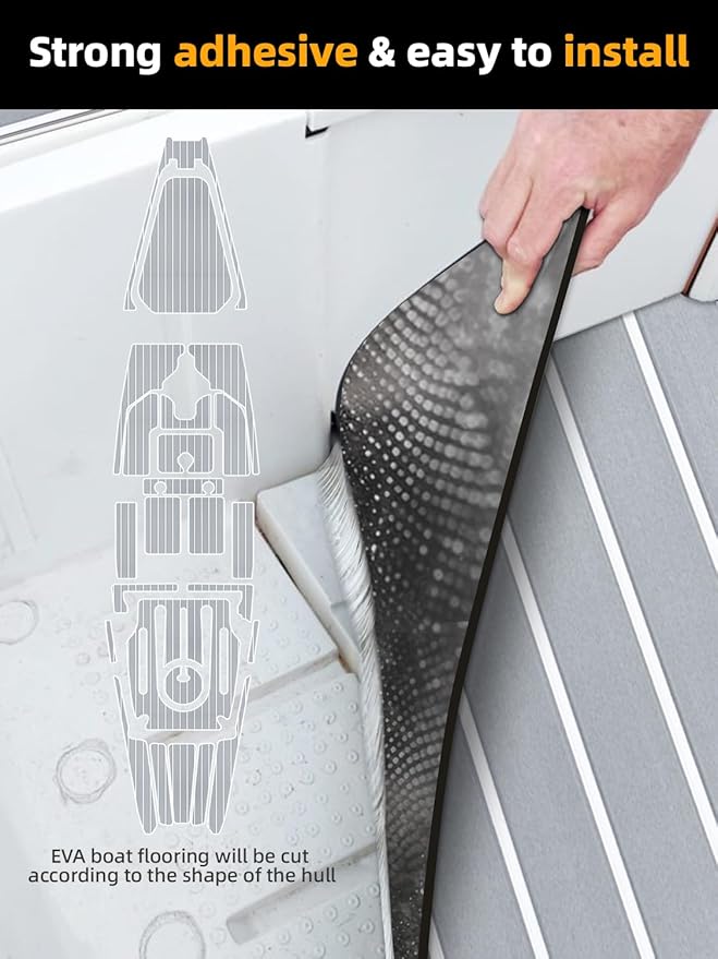 - Easy Installation Boat Flooring- You can use a cutting tool to cut this eva foam boat flooring sheet to any size for installation, with strong glue on the back (please keep the installation site clean). Very easy to cut and hard to fall off after cutting, and it is flat and beautiful. You can enjoy DIY with this marine flooring materials