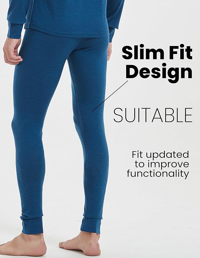 Iguana Mens 100% Merino Wool Base Layer Sets for Ski Lightweight Thermal Underwear