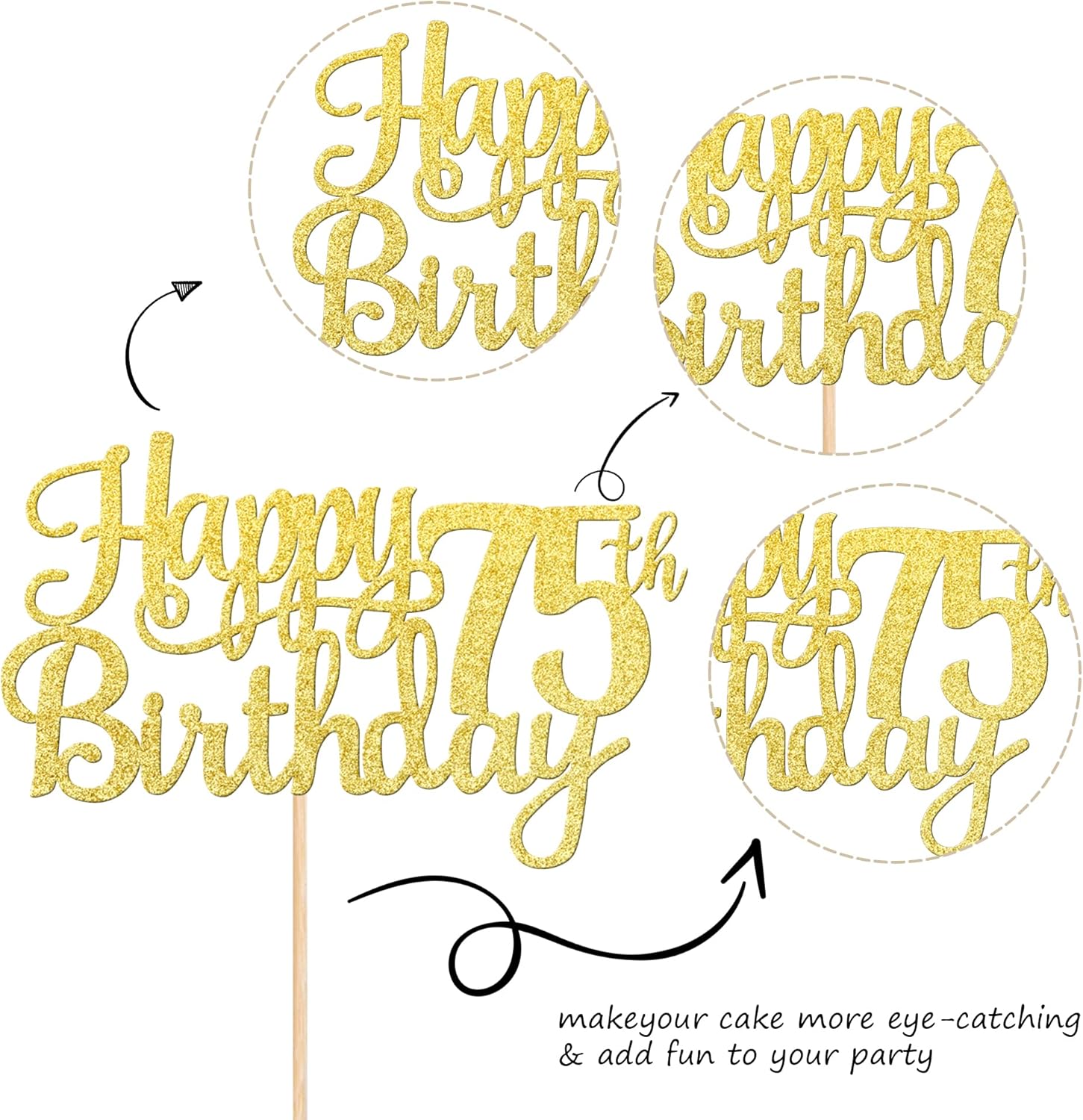 - Wide Usages ! The cake topper is perfect for happy 75th birthday theme party, cheers to 75 years birthday theme party cake decorations, they can make your cake more attractive and bring the fun to your party.You can also apply them for ice cream, fruits, cookies and other desserts.