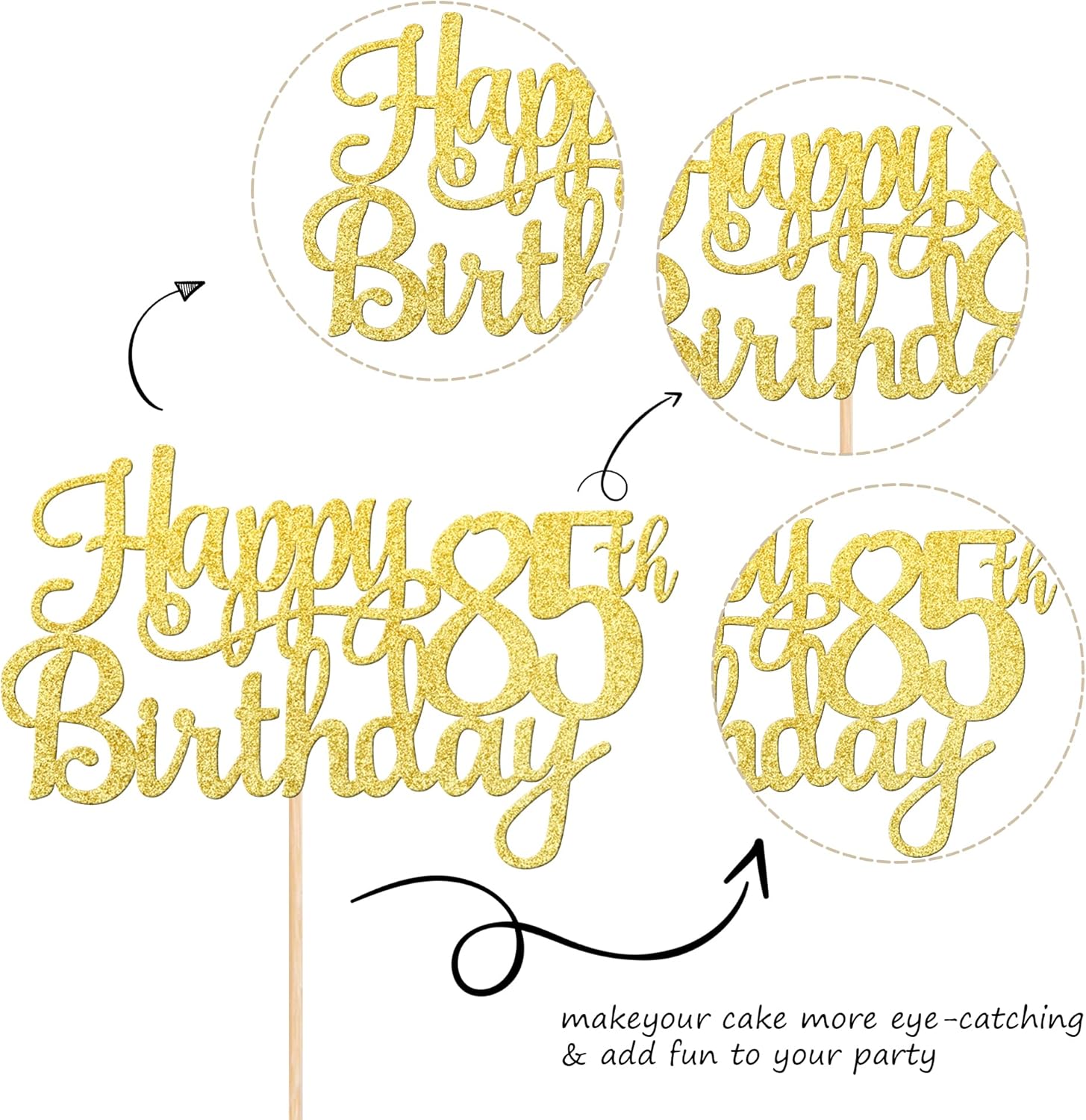 - Wide Usages ! The cake topper is perfect for happy 85th birthday theme party, cheers to 85 years birthday theme party cake decorations, they can make your cake more attractive and bring the fun to your party.You can also apply them for ice cream, fruits, cookies and other desserts.