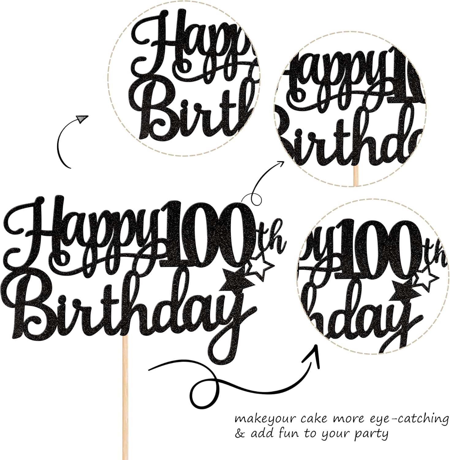 - Wide Usages ! The cake topper is perfect for happy 100th birthday theme party, cheers to 100 years birthday theme party cake decorations, they can make your cake more attractive and bring the fun to your party.You can also apply them for ice cream, fruits, cookies and other desserts.