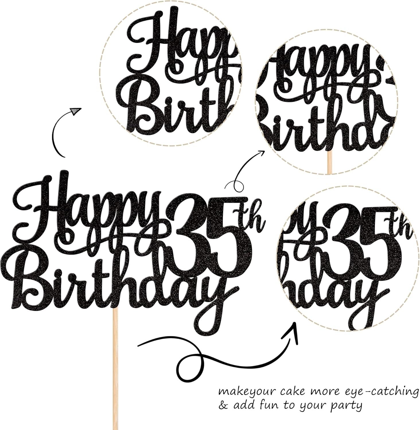- Wide Usages ! The cake topper is perfect for happy 35th birthday theme party, cheers to 35 years birthday theme party cake decorations, they can make your cake more attractive and bring the fun to your party.You can also apply them for ice cream, fruits, cookies and other desserts.