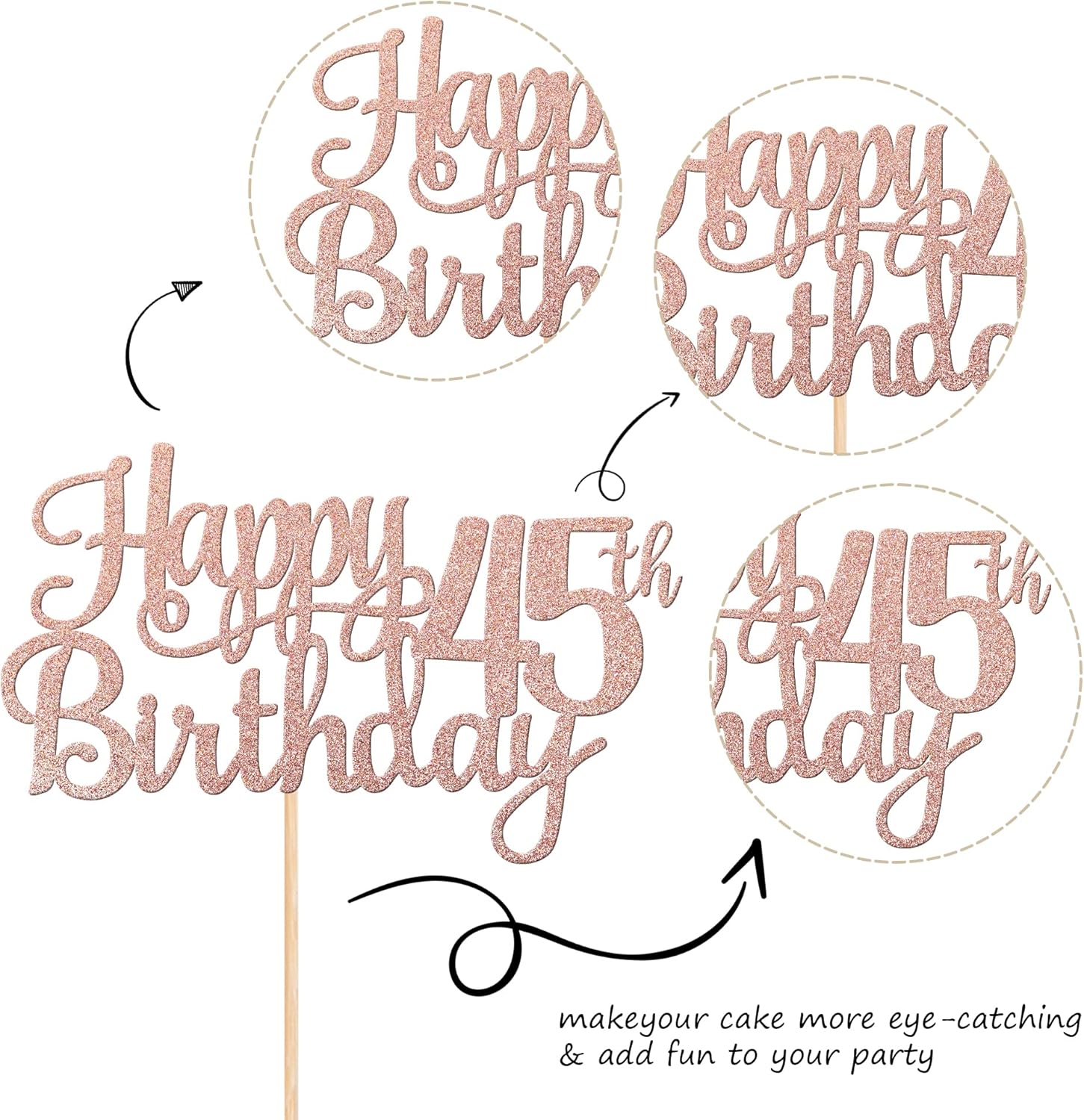 - Wide Usages ! The cake topper is perfect for happy 45th birthday theme party, cheers to 45 years birthday theme party cake decorations, they can make your cake more attractive and bring the fun to your party.You can also apply them for ice cream, fruits, cookies and other desserts.