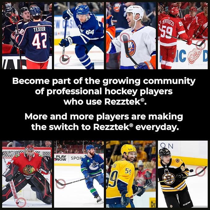 - USED BY PRO PLAYERS – Rezztek is used in all elite hockey leagues around the world. More than 30 players use Rezztek in the NHL and Rezztek is also used by Olympic athletes. Hockey players, with Rezztek on their sticks scored more than 1000 goals and assists in the National Hockey League. Rezztek is an officially licensed NHL product.