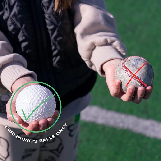 - 20 MPH: Uses Furlihong plastic training balls (0.81 oz), sting-free and won’t dent bats. Pitching speed: 20 MPH