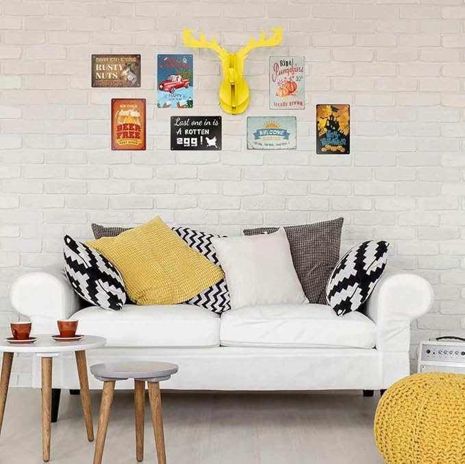 - The Tin Mark Has 4 Pre-drilled Holes On The 4 Side Corners, Which Can Be Easily Hung On The Wall With Nails Or Double-sided Tape.