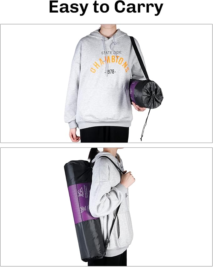 - Portable and convenient, this travel yoga mat includes a carrying bag for easy transport. Whether for home use or outdoor yoga sessions, its lightweight and packable design makes it a versatile choice. Perfect as a workout mat for home workout or on-the-go fitness needs