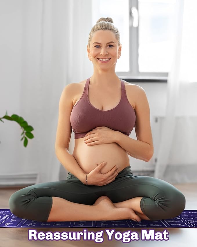 - Enhance your yoga practice with this instructional yoga mat featuring 75 illustrated poses and 75 stretching exercises, perfect for beginners. The 1/4” thick, non-toxic, and non-slip surface ensures safety and comfort during workouts at home or outdoors. Ideal as an exercise mat for home workout or fitness routines