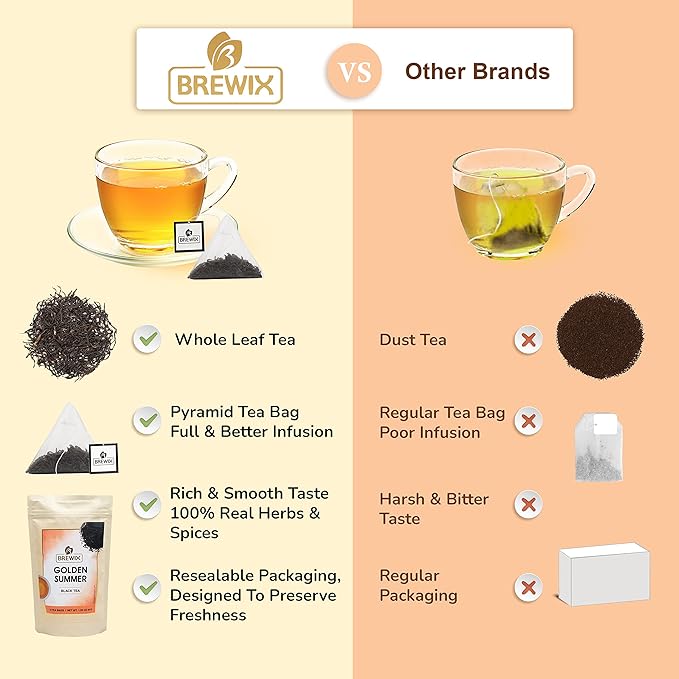 BREWIX, Darjeeling Golden Summer Tea From Himalayas (22 Pyramid Tea Bags) | High Grown in the Himalayas | Long Leaf Tea, Packed in Resealable Ziplock Pouch
