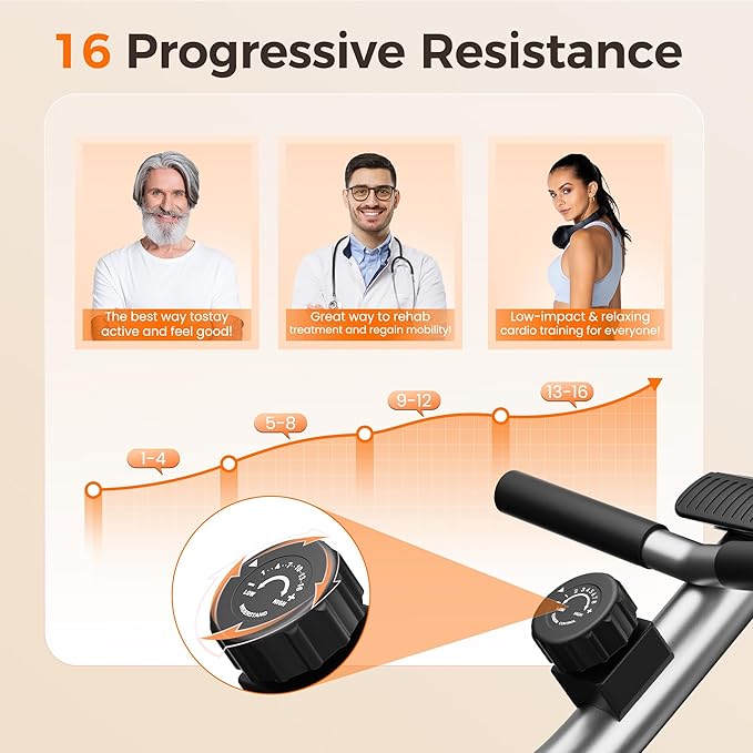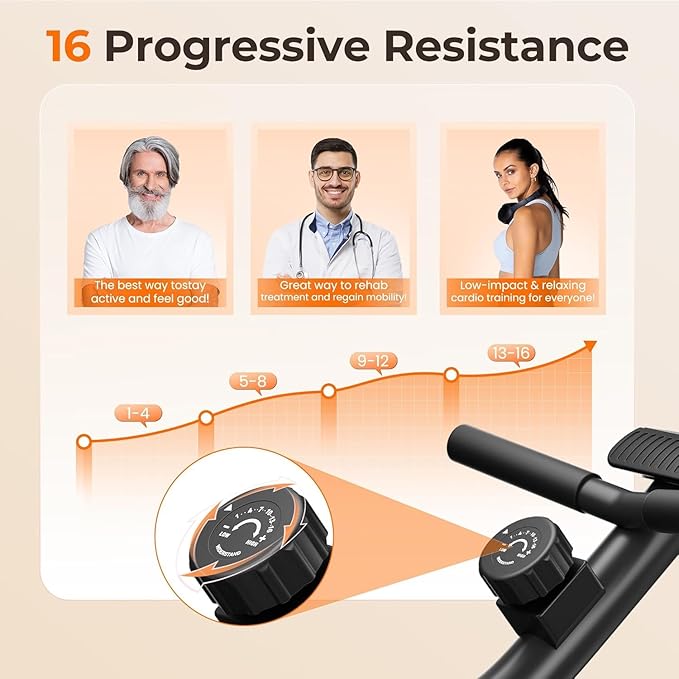 - 16 Levels of Resistance: With 16 resistance levels providing up to 60 lbs, this bike suits beginners to pros. Select your level for optimal workout efficiency