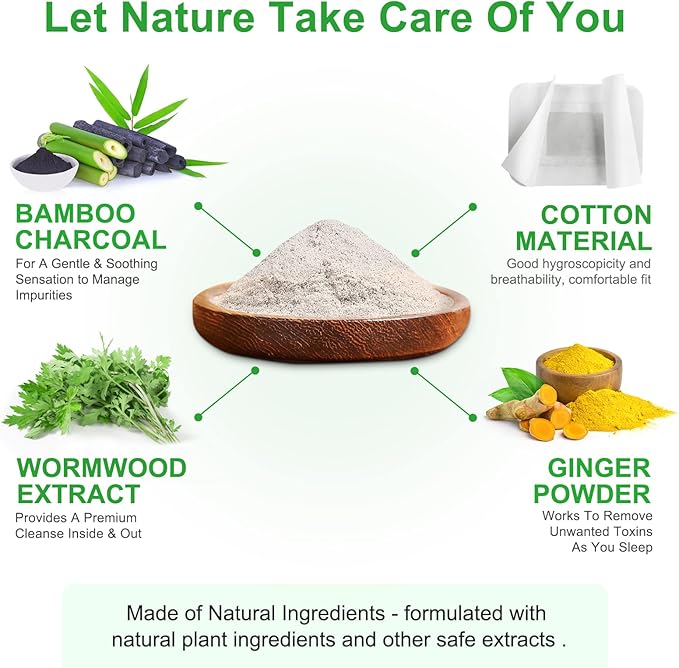 - 👣【Natural Ingredients】: The main ingredients of Ginger Foot Pads - ginger powder, bamboo vinegar powder.