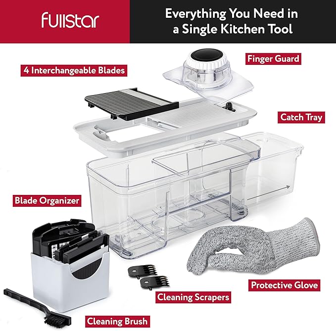 - Effortless Storage, Effortless Cleanliness - Embrace simplicity! Our compact Fullstar mandoline slicer is designed for easy storage and hassle-free cleaning. It's a dishwasher's best friend, saving you time and energy.