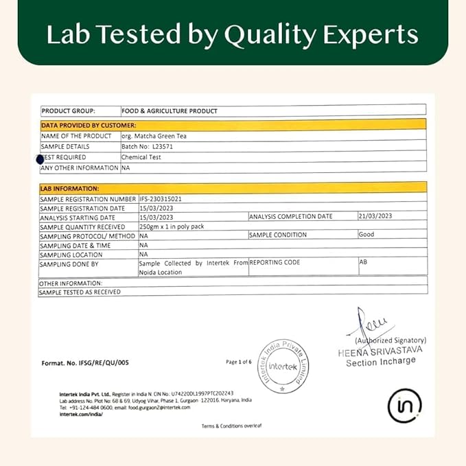 - NON-GMO VERIFIED MATCHA - Experience the finest in ethical Matcha with our Non-GMO verified Matcha green tea that has a vibrant green color signifying freshness and purity. The meticulous cultivation process brings out a smooth, velvety texture with delicate sweetness and subtle undertones, making it a delightful experience.