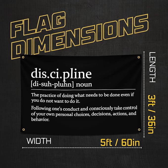 - EASY HANGING: With four brass grommets, our motivational flag offers versatile hanging options. Securely hang it on any wall, whether it's your garage, bedroom, or home gym. These grommets ensure the flag stays strong and steadfast, adding style and motivation to your surroundings.