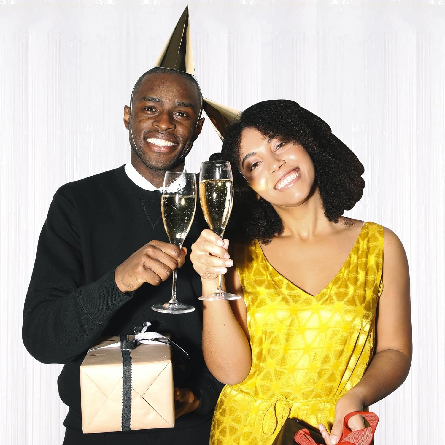 10 Pack White Backdrop Curtain 3.2ft x 8.2ft Metallic Tinsel Foil Fringe Curtains Photo Booth Background for Birthday Party Decoration Baby Shower Engagement Wedding Christmas Decoration (White)