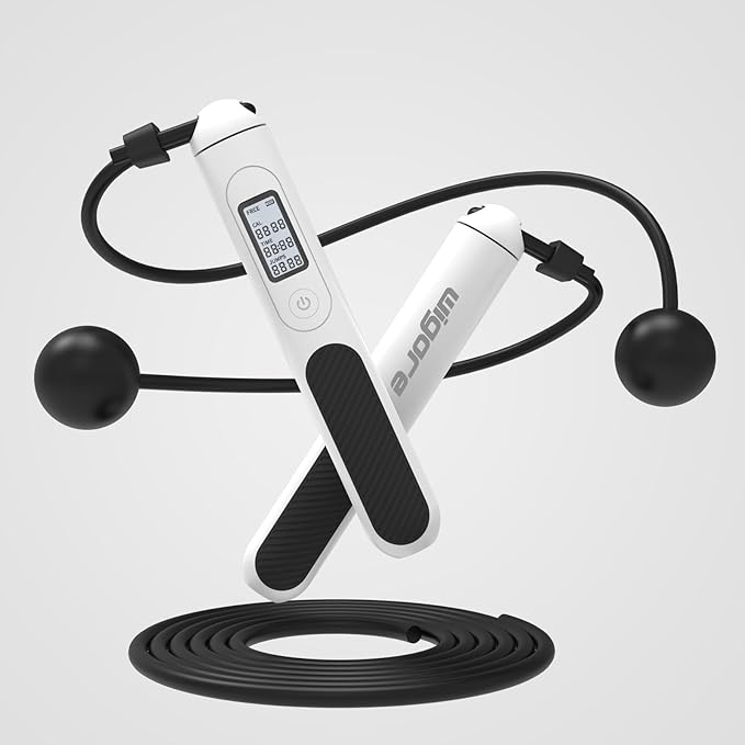 - 【LED HD Display & Ergonomic Handles】: Wigore jump rope are unique design for fitness are equipped with Ergonomic Handles that is made from friendly environmental ABS and non-polluting silicone material. ergonomic silica gel non-slip grip. Non-slip, non-toxic, and tasteless for safe use. The comfortable hand grip reduces fatigue and makes exerting force easie,Also,the main handle is embedded with a backlit LCD display that provides users a clear view of your workout