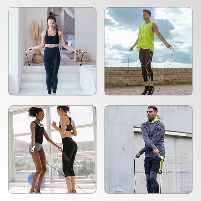 - 【Adjustable cable great for all levels】Wigore skipping rope for fitness adopts 3M/9.85FT PVC steel wire rope, which is durable and non-tangled, can be applied to concrete floors, wood and cobblestone roads. The adjustable length makes the rope suitable for children and adults. It is a good choice if you plan to share with your family, suitable for crossfit, exercise, boxing, MMA, fitness and exercise