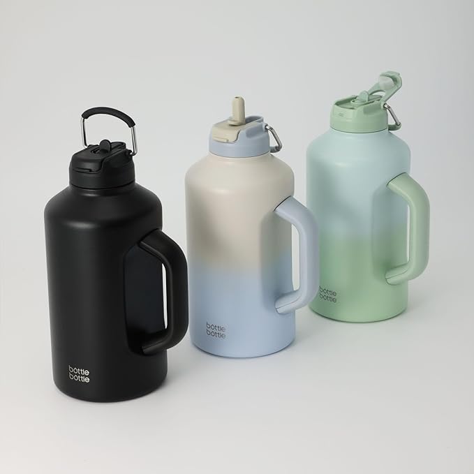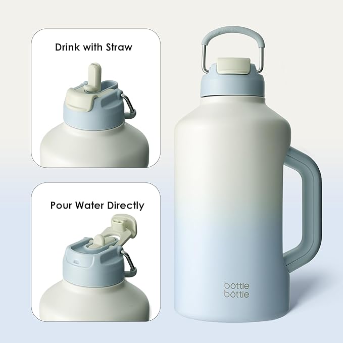 BOTTLE BOTTLE Insulated Water Bottle 64 oz with Straw and Dual-use Lid Stainless Steel Water Bottle with Handle Vacuum for Workout and Sports gray blue