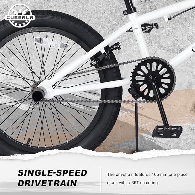 - Easy-to-Ride Design - This BMX bike features a drivetrain with a 165mm one-piece crank and a 36T chainring, and front and rear aluminum brakes for precise speed control. Its hand-brake levers enhance safety and make riding easier.