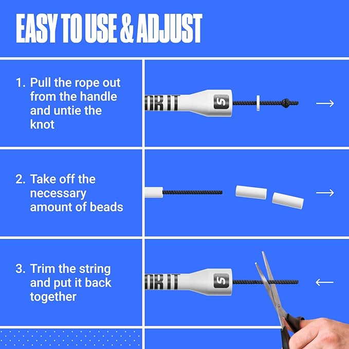 - ADJUSTABLE LENGTH: The easily customizable length (128 inch) makes the jump rope suitable as a jump rope for men or jump rope for women.
