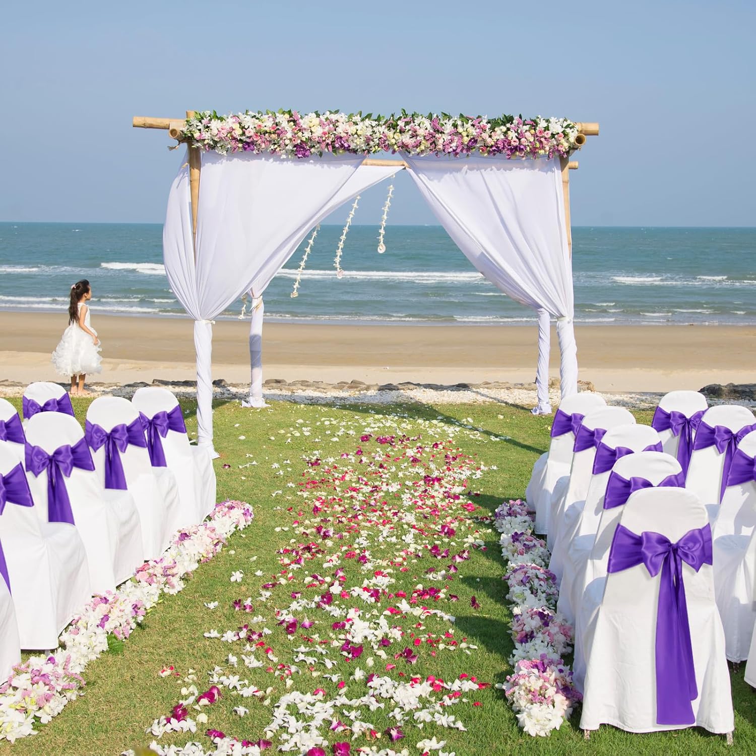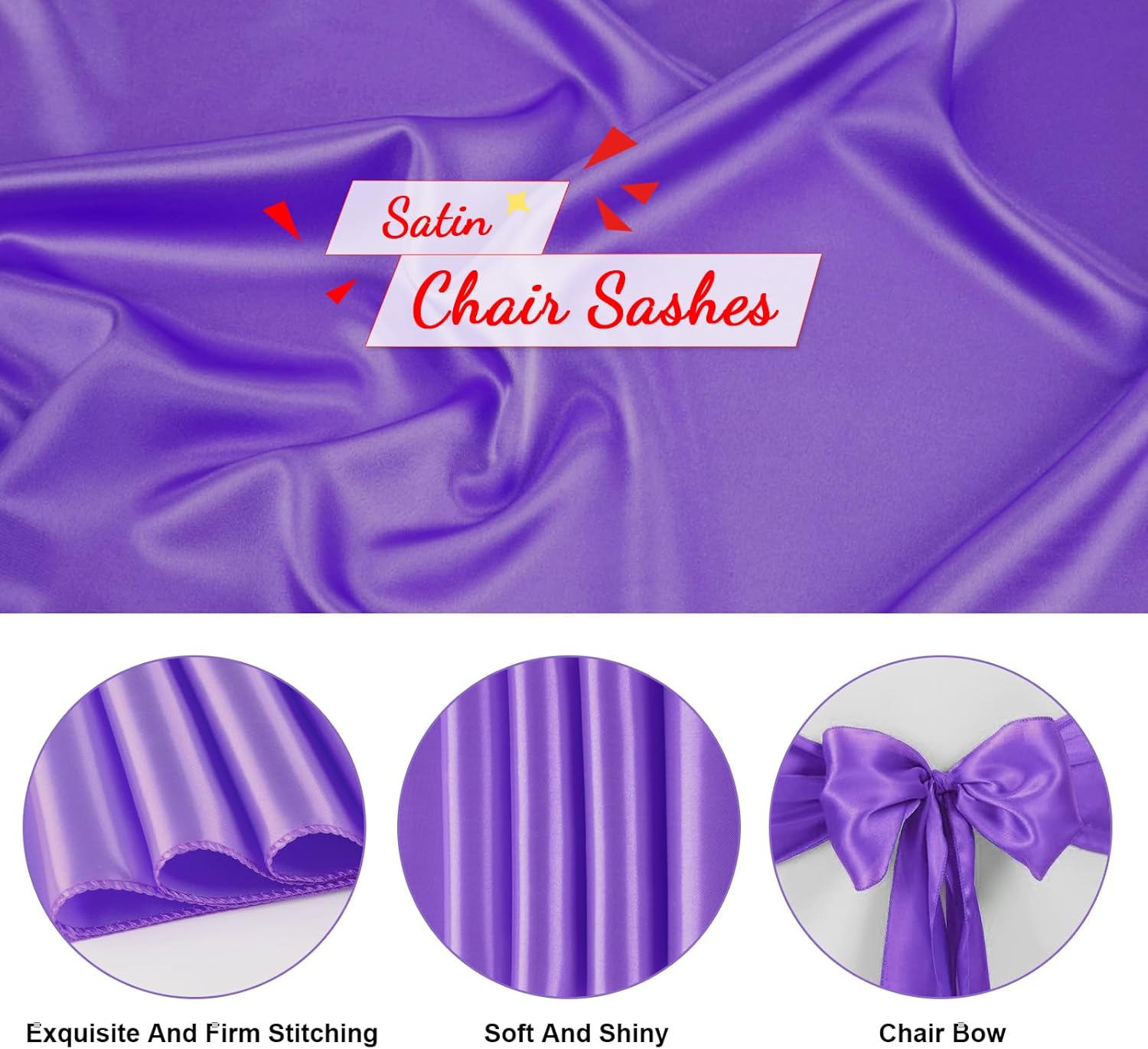 - Care Instructions: These purple satin chair sashes ties are hand or machine washable with cold water only. Do not bleach and drying, please line dry. You can cold iron the front and back of it if needed