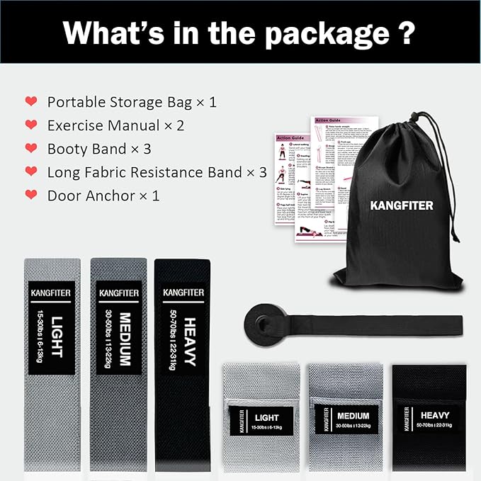 - 【HIGH-QUALITY FABRIC MATERIALS】: KANGFITER resistance bands are made of high-quality fabric materials with exquisite weaving techniques. Premium materials enhance the comfort and durability of the elastic exercise band, preventing it from breaking and rolling over during use.