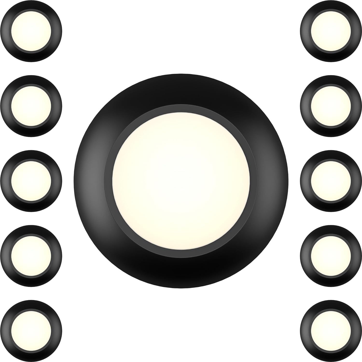 10 Packs 4 Inch Black LED Low Profile Recessed & Surface Mount Disk Light, Round, 10W, 600 Lumens, 3000K Warm White, CRI80, DOB Design, Dimmable, ETL Listed