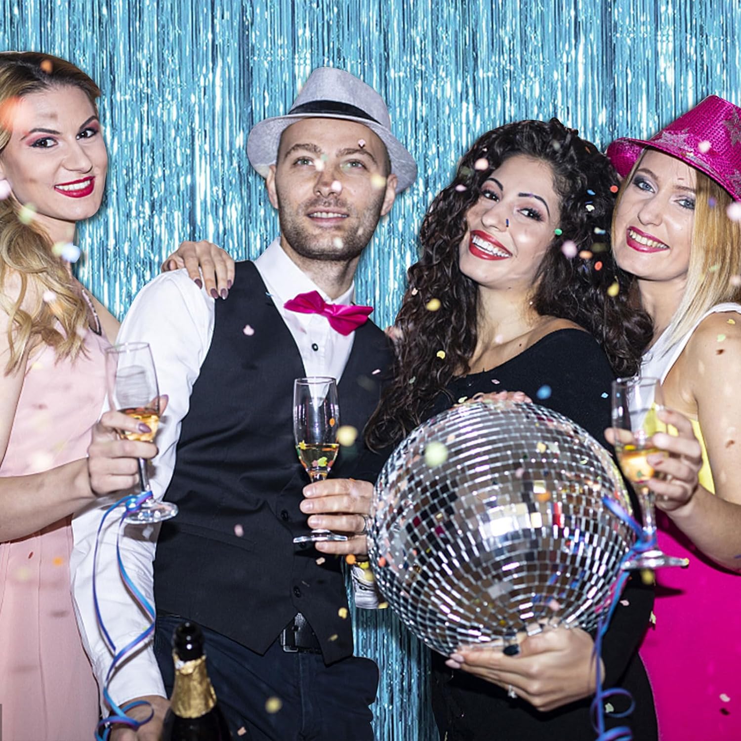 - Material: This tinsel backdrop is made of high-quality shiny tinsel. Metallic streamers are available in a variety of beautiful colors with a shiny and reflective surface that creates an eye-catching and mesmerizing effect. Sparkle and bling will definitely create a shiny nice atmosphere for your party.