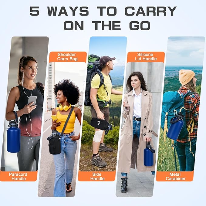 - Full-function Paracord - With brilliant matching colors brings a touch of youthful vibe to the jugs. As a sturdy survival handle it comes with a carabiner, compass, fire starter and whistle, perfect for your wild adventures.