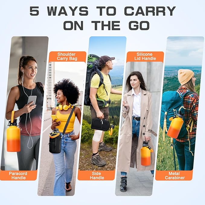 - Full-function Paracord - With brilliant matching colors brings a touch of youthful vibe to the jugs. As a sturdy survival handle it comes with a carabiner, compass, fire starter and whistle, perfect for your wild adventures.