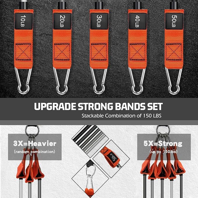 - Versatile Resistance Bands: VEICK resistance bands set come with 5 different resistance levels: 10lbs, 20lbs, 30lbs, 40lbs and 50lbs in 5 different colors. You can use these workout bands independently or in any combination with a maximum resistance level of 150lbs