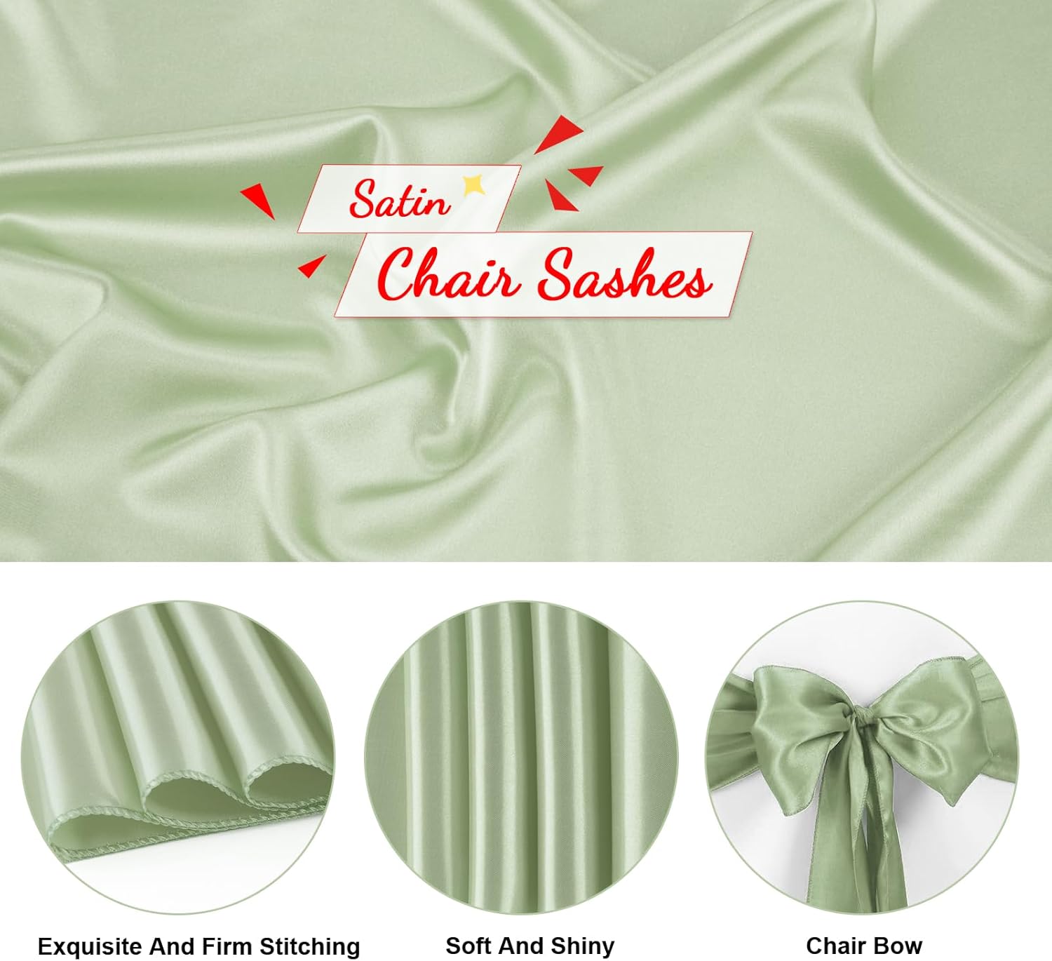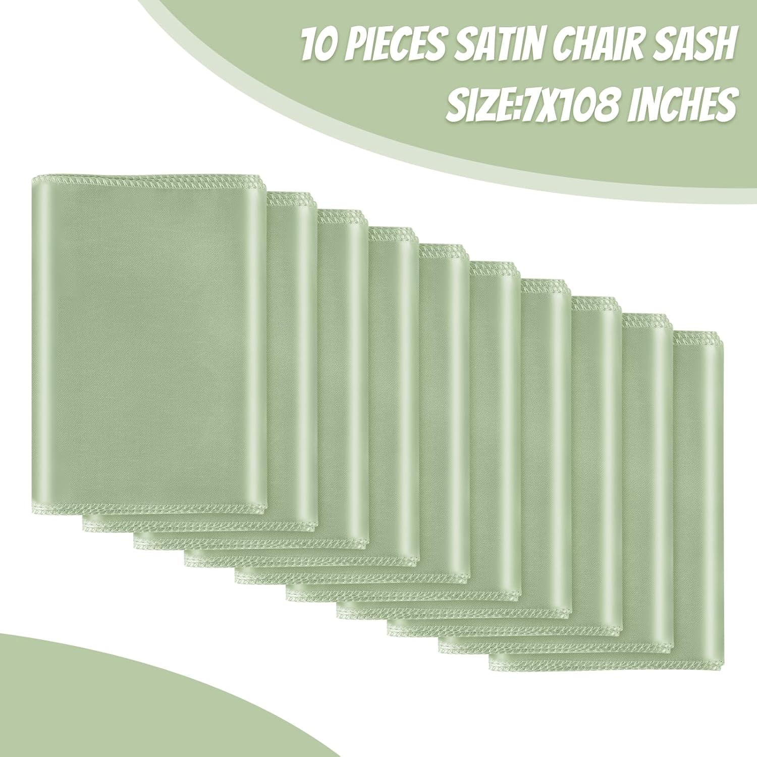 - Size & Package:You will get 10 pieces sage green satin chair sashes, and the size is about 108" x7" or 275cm(l) x 17cm(w). These chair ties adopt flating packing, please to tie the bow by yourself. Each package includes chair sashes only, no chair covers