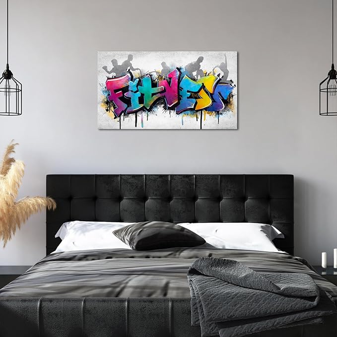 iHAPPYWALL Large Fitness Sports Canvas Wall Art Abstract Colorful Fitness Motivational Life Quote for Gym Workout Room Home Bedroom Office Ready to Hang 20x36inch (Purple)