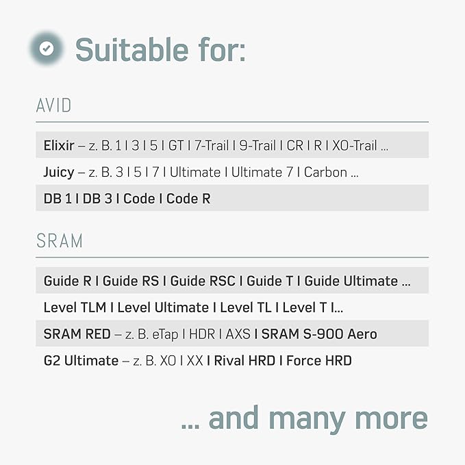 - GERMAN DEVELOPMENT - This Borgen brake fluid bleeder kit suitable for Avid and Sram disc brakes, is a field-tested bike brake bleeding kit specialised for hydraulic bicycle brakes.