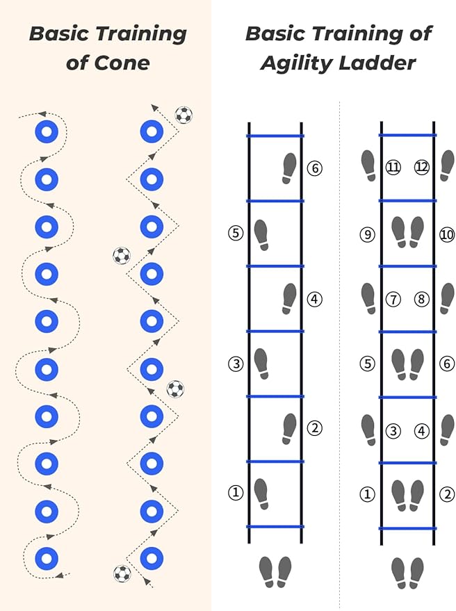 - 20 Feet 12 Rungs Agility Ladder and 12 Cones for Workout: Ideal for beginners and professional athletes, this agility ladder set is a must-have for improving speed, agility, coordination, quickness and overall athletic performance.Easy Adjustable 12 Rungs Not Tangled for the next time use.