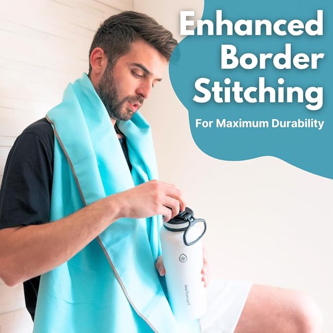 ECCOSOPHY Microfiber Beach Towel – Quick Dry Gym Towel, Highly Absorbent with Ribbed Texture, Lightweight – Ideal for Travel, Pool, Yoga, Fitness & Outdoor Adventures – 60x30 Aqua