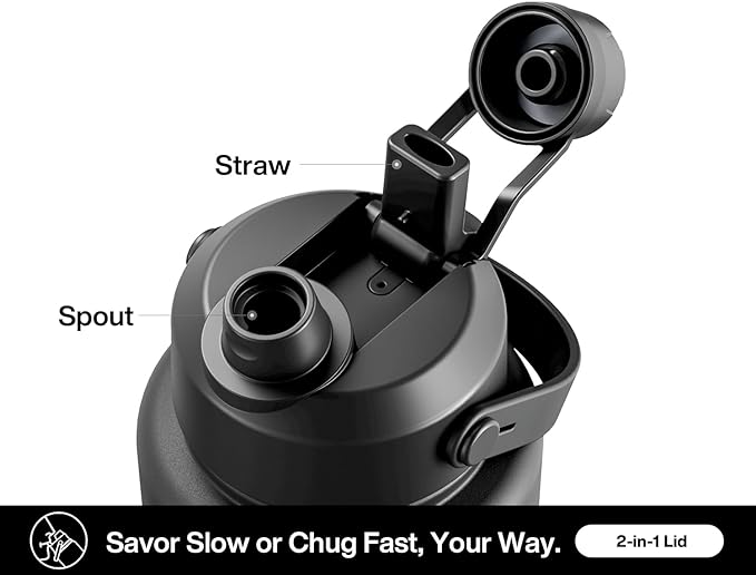 - Versatile 2-in-1 Lid: Features a straw for easy sipping and a spout for effortless pouring or chugging; simplifying beverage access whether it's a hot coffee or a cold drink