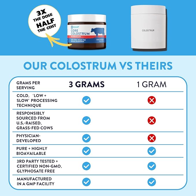 Equip Foods Core Bovine Colostrum Powder - 3,000mg Grass Fed Colostrum Supplement - Gut Health, Immunity, Recovery Lactoferrin Supplements - Keto Friendly Bovine Colostrum, 30 Servings, Watermelon